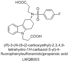 | Chemical Name: | (R)-3-(N-(9-(2-carboxyethyl)-2,3,4,9-tetrahydro-1H-carbazol-3-yl)-4-fluorophenylsulfonamido)propanoic acid |